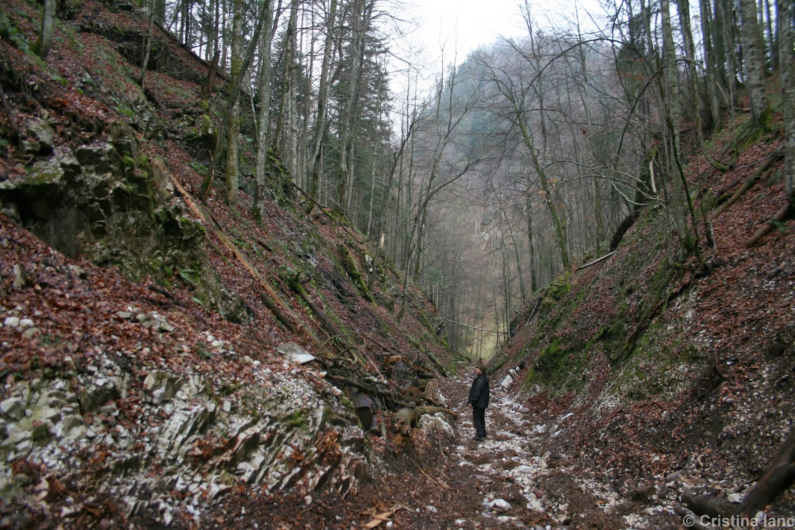 Valea este destul de interesanta, apar stanci si gasim niste pesterute cu posibilitati de continuare. Nu avem la noi echipament speo, asa ca hotaram sa mai venim in zona.